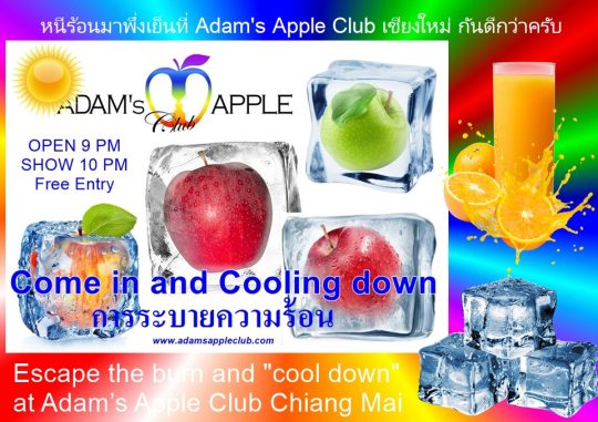 The heat is making a comeback! ☀️🔥 Escape the burn and “cool down” at Adam’s Apple Club Chiang Mai. Whether you need an ice-cold drink or just want to chill in our state-of-the-art air conditioning, we’ve got you covered. See you at the bar! 🍹❄️