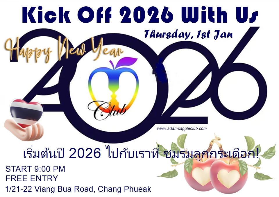 Happy New Year 2026! – From our beloved Cabaret Team and every member of the Adams Apple Club family here in Chiang Mai, we send you our warmest wishes for an amazing year ahead. May 2026 bring you joy, success, and the fulfillment of all your dreams. Thank you for being a part of our journey—your support and love mean the world to us.
