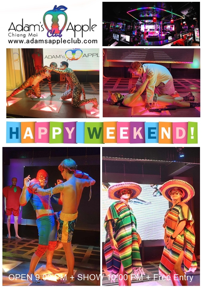 Happy Weekend 2026! 🍎✨ Don’t miss #AdamsAppleClub, the best gay bar in #ChiangMai. Free entry, top shows! 9PM doors, 10PM show. 🍿🥂