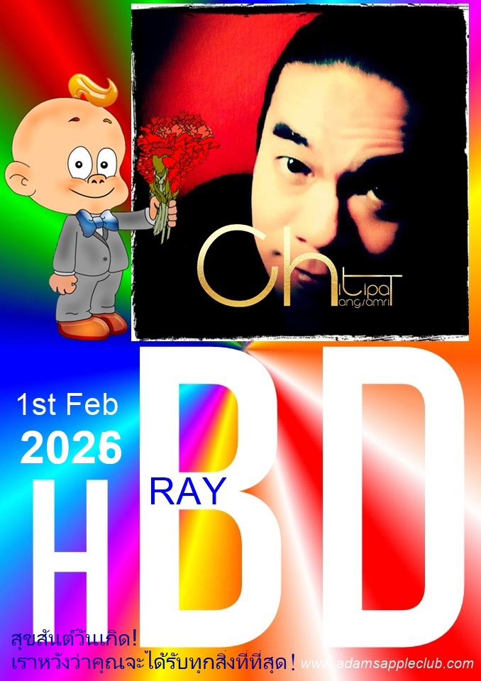 HBD Khun Ray 2026 – On this special day, 1st February 2026, the entire team at The Adam’s Apple Club Chiang Mai would like to send our warmest birthday wishes to Khun Ray (Management, BRC Karaoke & Host). 🎤🌟