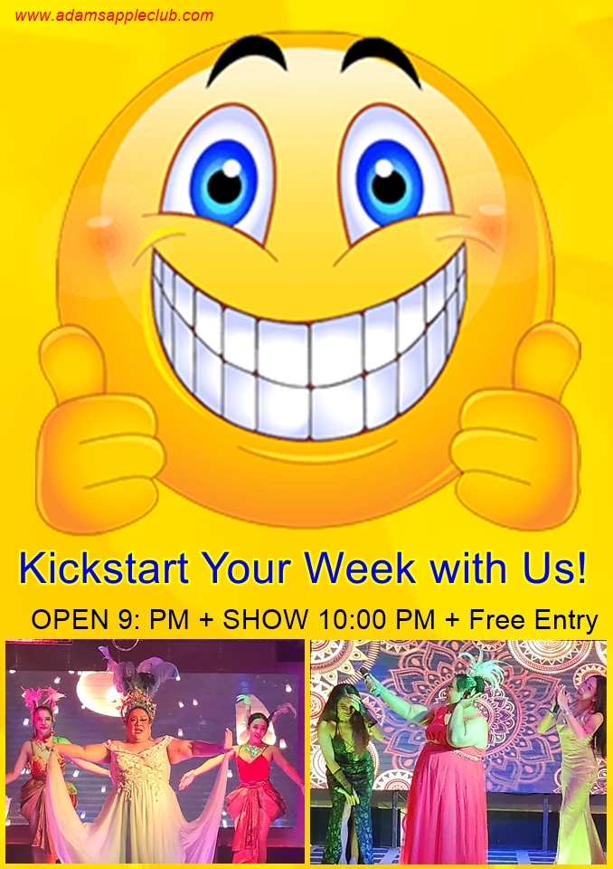 Good morning, Chiang Mai! 🌞 Kickstart your week with positivity, laughter, and unforgettable moments at Adam’s Apple Club. Whether you’re looking for fun, fabulous entertainment, or just a reason to smile, we’ve got you covered every Monday night!