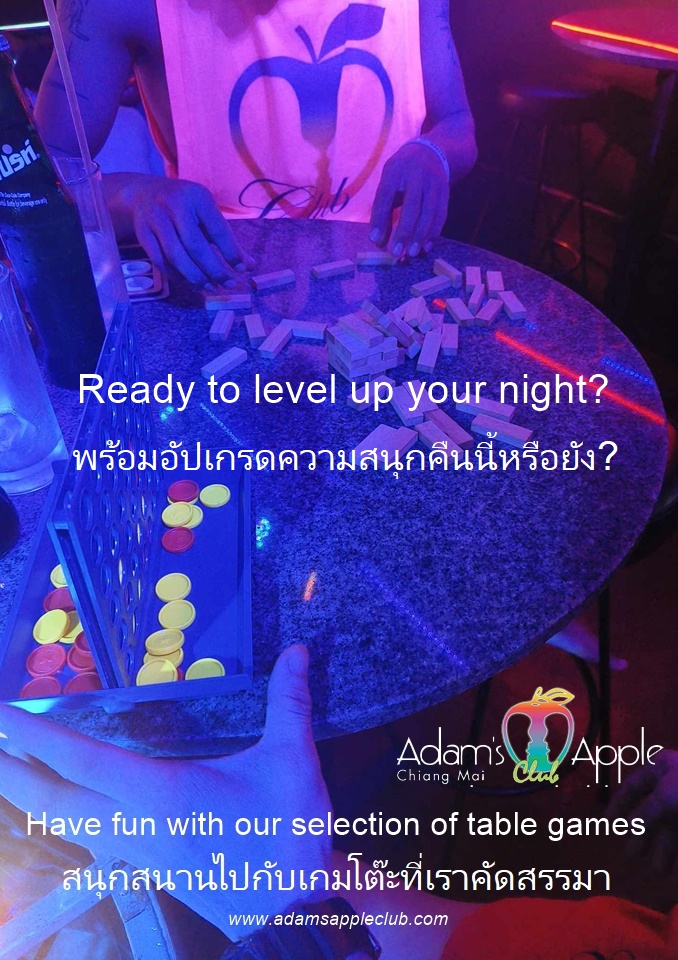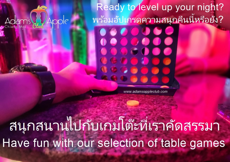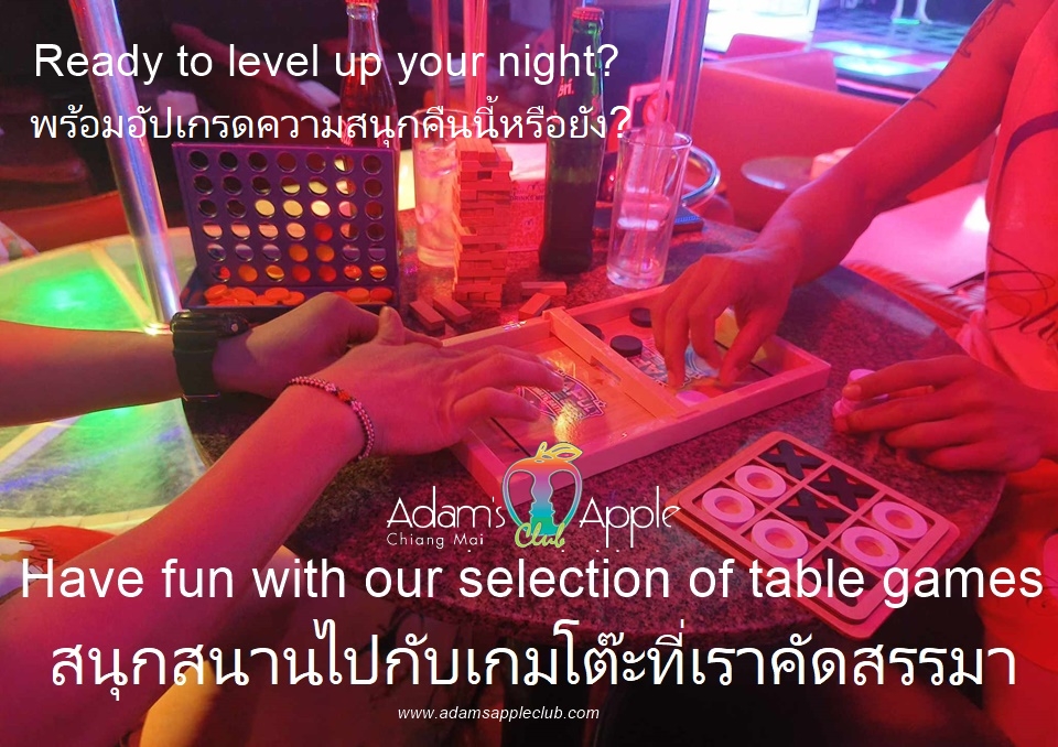 Who’s up for a challenge? 🎲 Try our selection of table games at Adam’s Apple Club Chiang Mai! Perfect for breaking the ice before our world-class show at 10 PM. See you tonight! 🍎✨