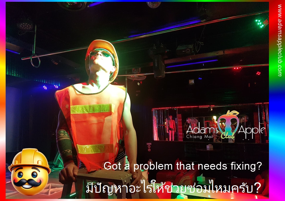 Got a problem that needs fixing? 🛠️ Our helpful construction worker at Adam’s Apple Club is on standby and ready to assist! From heavy lifting to more… specialized tasks like “laying a pipe,” you can always count on his professionalism and expert skill. 💪💦
