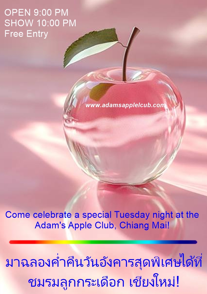 🩷 Think Pink this Tuesday! 🩷 Did you know Tuesday is the day of energy and protection in Thailand? Celebrate in style at the legendary Adam’s Apple Club Chiang Mai! 🍎✨