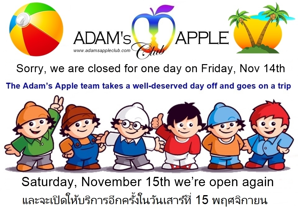 ขออภัย เราจะปิดทำการหนึ่งวันในวันศุกร์ที่ 14 พฤศจิกายน และจะเปิดให้บริการอีกครั้งในวันเสาร์ที่ 15 พฤศจิกายน