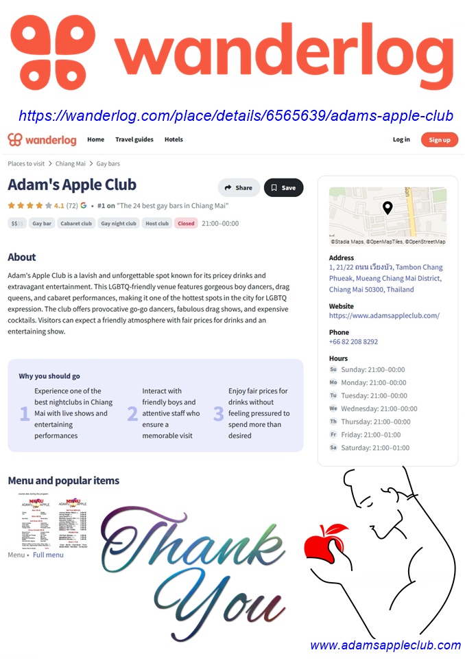 Wanderlog is a website that offers users individual tips and information about the Gay Life in Chiang Mai. The page gives a Scene Overview. Guide and maps explaining the different LGBT areas and lifestyles in Chiang Mai and for gay foreigners and Thais.