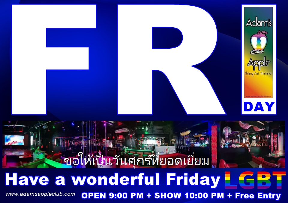 สโมสรแอดัมส์แอปเปิ้ล ในเชียงใหม่เปิดทุกคืน 21:00 น. และการแสดงที่น่าตื่นตาตื่นใจของเราเริ่มต้นทุกคืน 22:00 น.